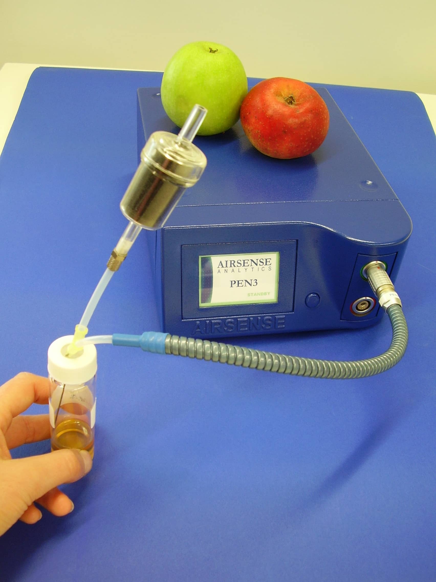 Ten different metal oxide sensors (MOS) capture odors like small electronic “olfactory cells” and convert them into electrical signals, which are then analyzed by a computer algorithm. This leads to immediate output of results.